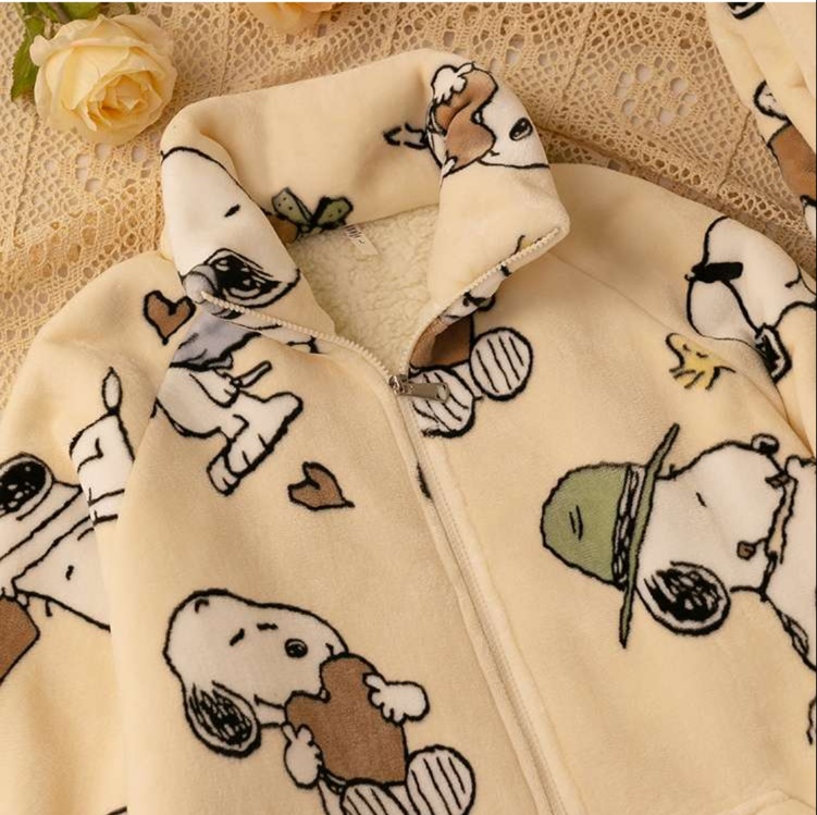 家族旅行の必需品として大活躍する、もこもこ素材のパジャマセット。愛らしい犬のキャラクターが描かれた生地に、ふわふわの裏地を組み合わせました。お子様も安心して眠れる睡眠グッズとして、楽しい旅の思い出作りをサポートします。