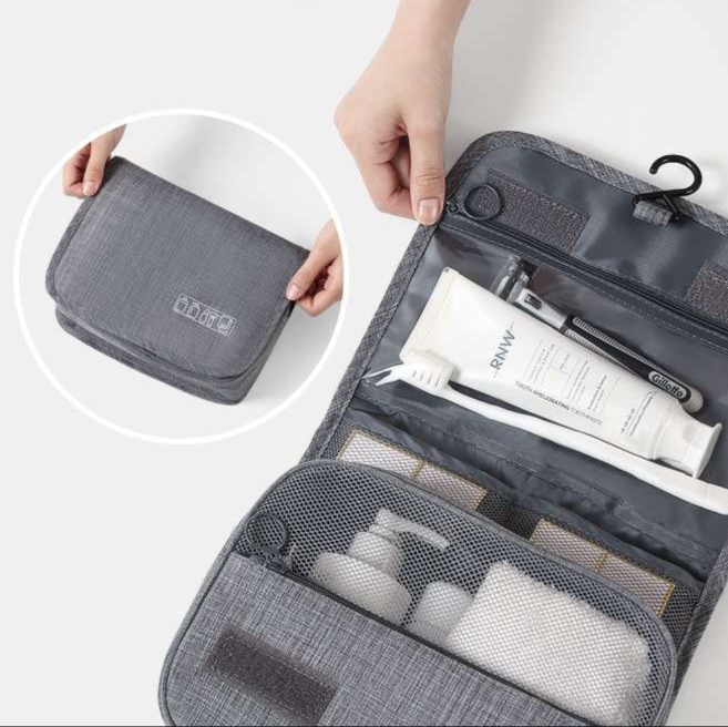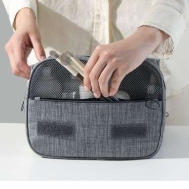 吊り下げ可能なフック付きで場所を取らず、メッシュポケットで中身が見やすい設計になっています。